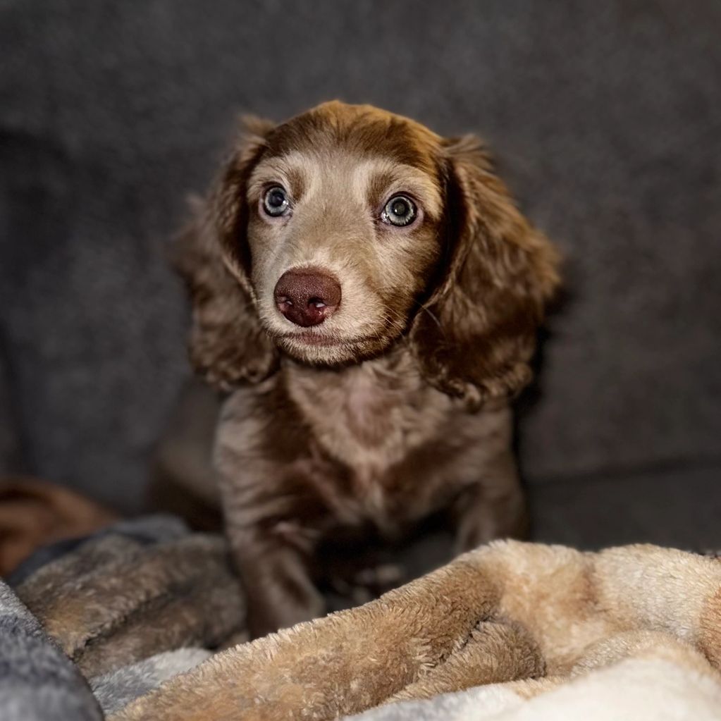 🐾Astro is one of our Sires and will be joining the program December 2026. He is a long haired Isabella Miniature Dachshund. AKC Registered, health tested clear, and Merle clear🐾