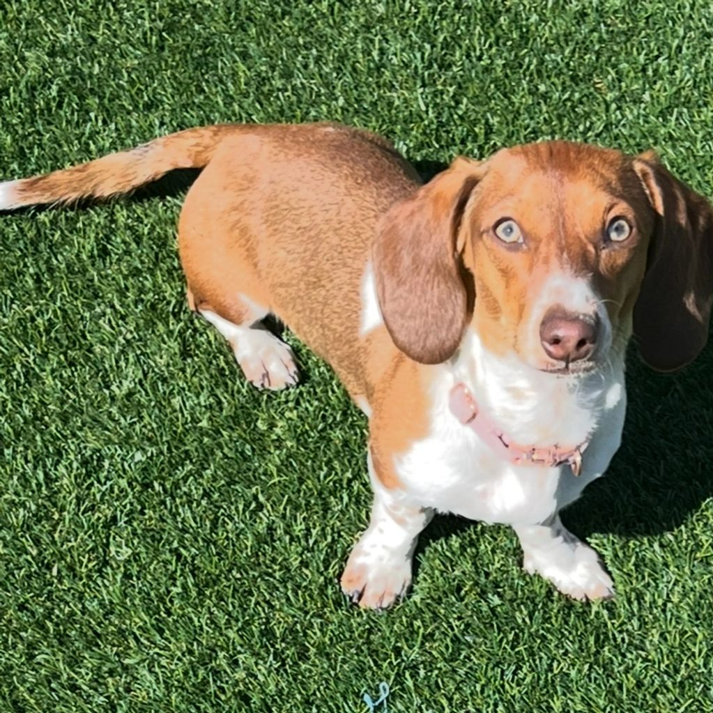 🐾Peanut is one of our Dams. Sweet Pea Doxies is named after her. She is my sweet little Peanut . She is generically health tested, PRA clear and Merle clear. She is a short-haired, red piebald Miniature Dachshund. Peanut has a very calm temperament and is very loyal and carries herself with confidence. Weight: 8.5 pounds🐾