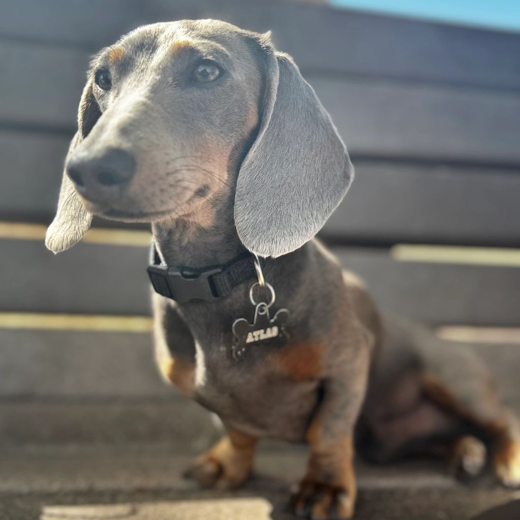 🐾Atlas is one of our Sires and he does not belong to me but I occasionally breed him with my girls. He is a short-haired Miniature Dachshund who is blue with tan points.